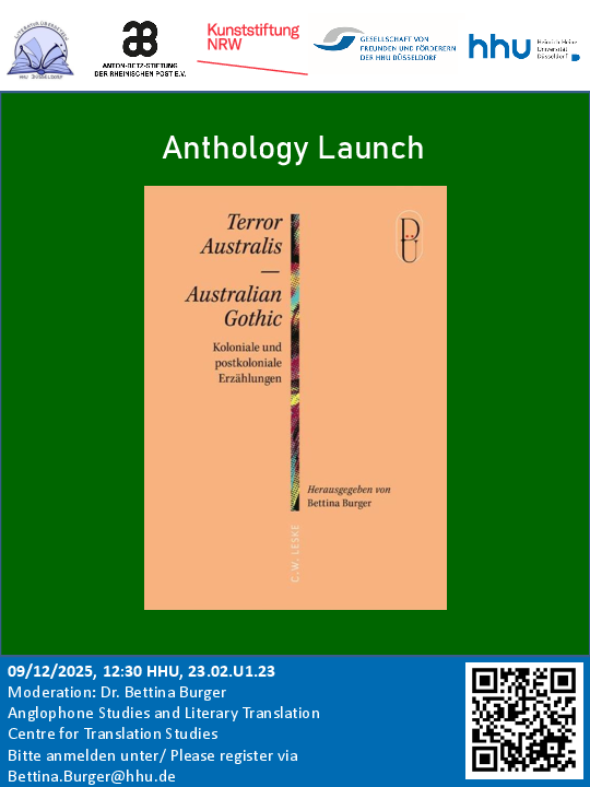 The CTS and the section “Anglophone Literatures / Literary Translation” cordially invite all those interested to the launch of the anthology Terror Australis – Australian Gothic: Colonial and Postcolonial Narratives, which will be published in January 2026 as part of the “Düsseldorf übersetzt” series by C.W. Leske Verlag.
